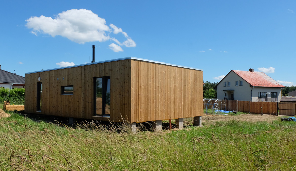 Tato stavba mate svým názvem - pro stavbu využíváme tři kusy 40stopých lodních kontejnerů, ač název je 2.5blokki home T. Název značí bydlení na ploše dvou celých a jednoho polovičního modulu. Při výrobě polovinu druhého modulu využíváme jako nosný prvek zastřešené terasy. Realizace je v provedení interiéru Blokki classic - nabílené stěny, plastové rámy oken, vinil na podlaze.