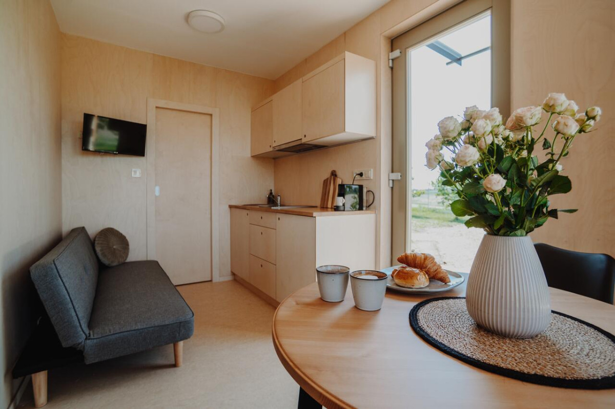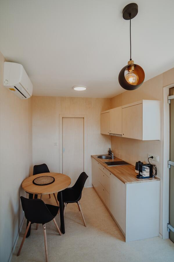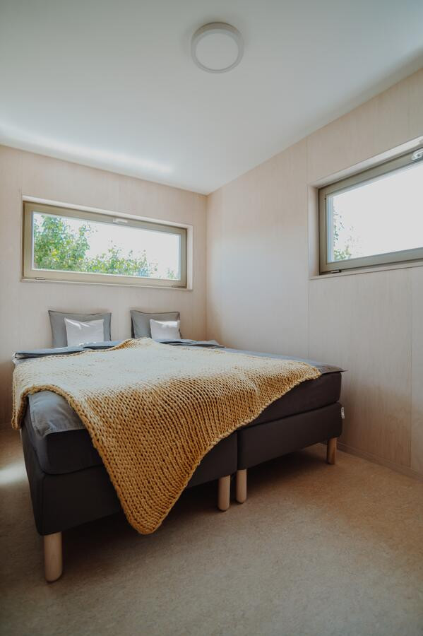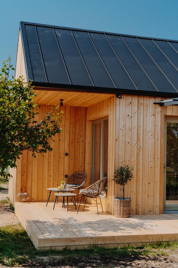 Nosným prvkem stavby jsou dva lodní kontejnery krácené na délku 8 metrů. Ke krácení modulů jsme přistoupili z důvodu nutnosti omezit zastavěnou plochu na 50 m2. Domek disponuje 2 oddělenými apartmány s vlastním vstupem, kuchyňkou, koupelnou a oddělenou ložnicí. Stavbu kryje pro Blokki netypická sedlová střecha. Šikovní majitelé vytvořili velice příjemné prostředí pro víkendový relax, více o projektu a nabídce ubytování na www.saldorf.com.