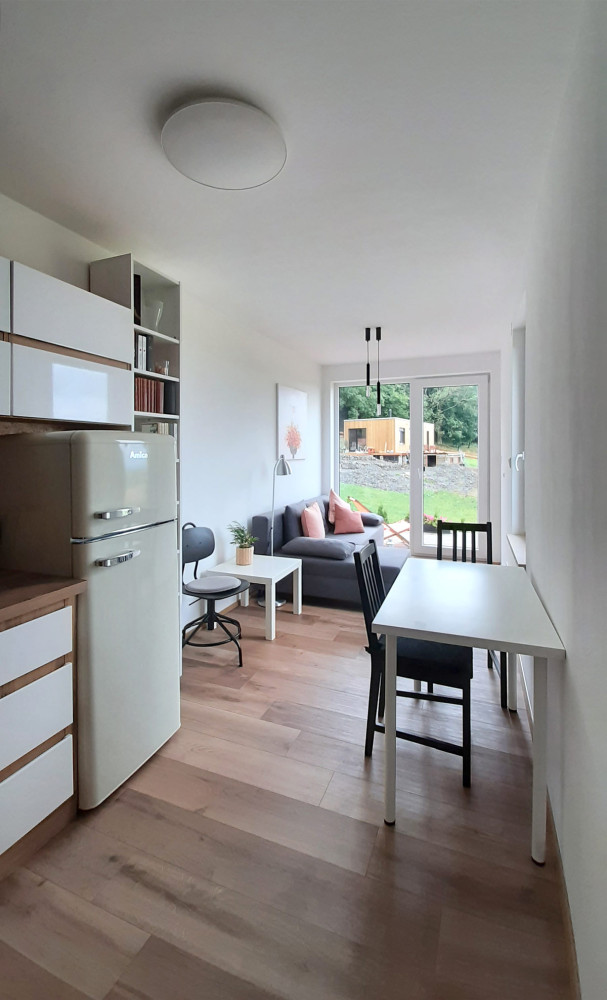 Na podzim (2021) na našem komplikovaném pozemku realizovali první ze čtyř staveb. Jednalo se o jeden samostatný a plně funkční kontejner se zelenou střechou a terasou. I přes všechny výzvy, které jim náš terén postavil do cesty, se s ním poprali skvěle. Doporučujeme!"