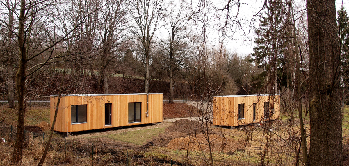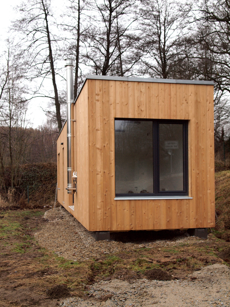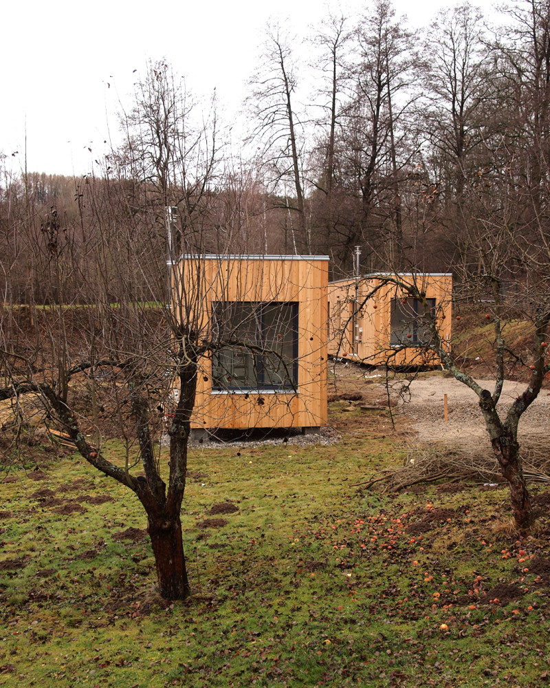 V roce 2021 nás oslovili majitelé pěkného pozemku s jejich záměrem výstavby dvou chatek na pronájem. Pozemkem je krásná zahrada v srdci Vysočiny, lemovaná potokem, poblíž rybníka. Po dohodě se zákazníky jsme navrhli dvě identické chaty vycházející z typové stavby 1bloki home. S ohledem na dispozice pozemku jsme upravili rozmístění oken, některá jsme zvětšili, interiér doplnili kamny na dřevo a fasádu ozdobili modřínem v přírodní beznátěrové podobě.