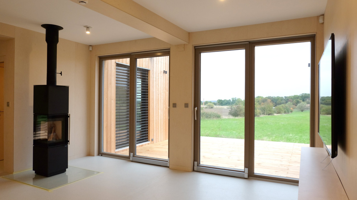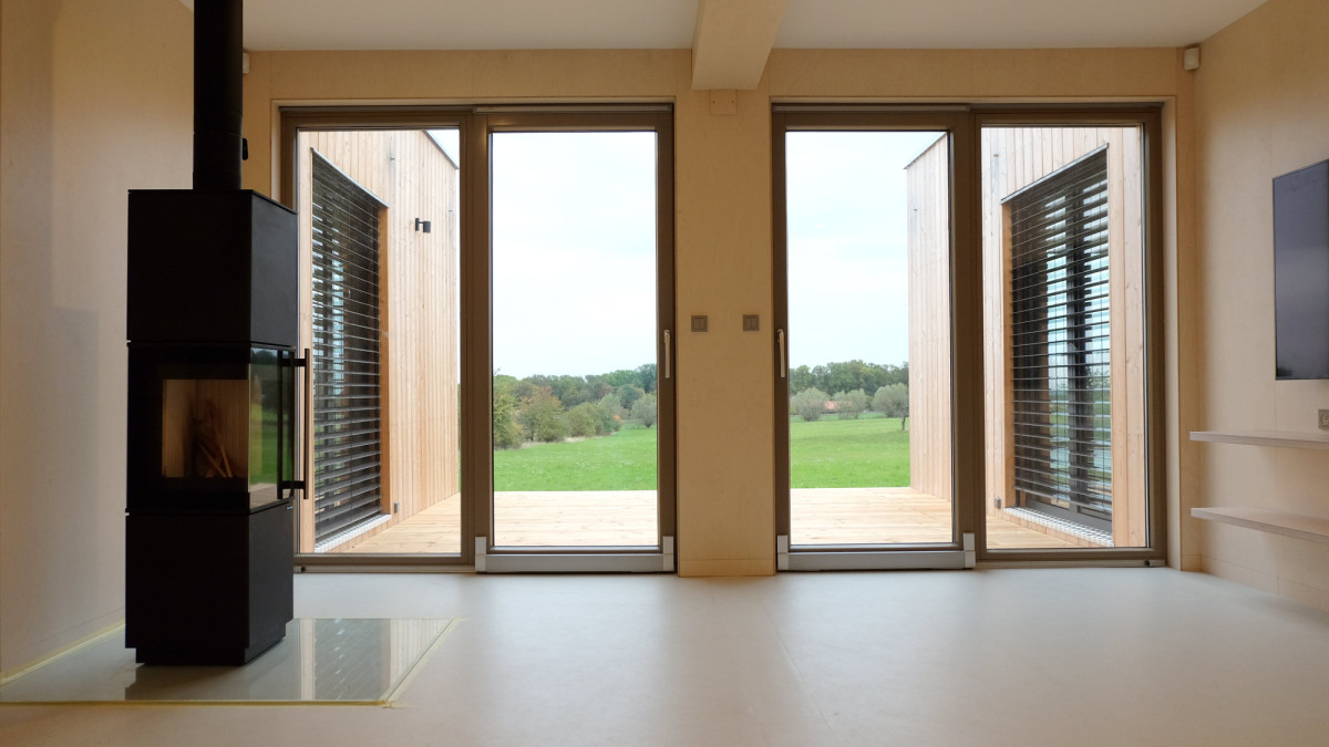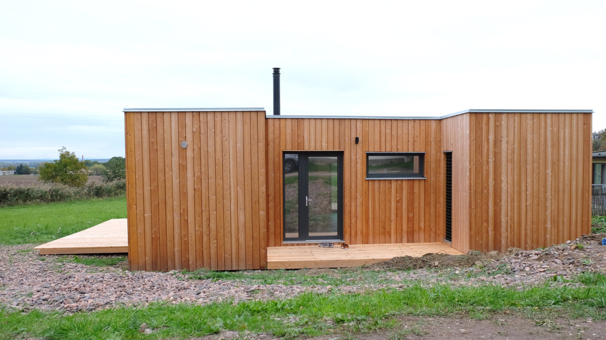 stavba v provedení design s modřínovou fasádou