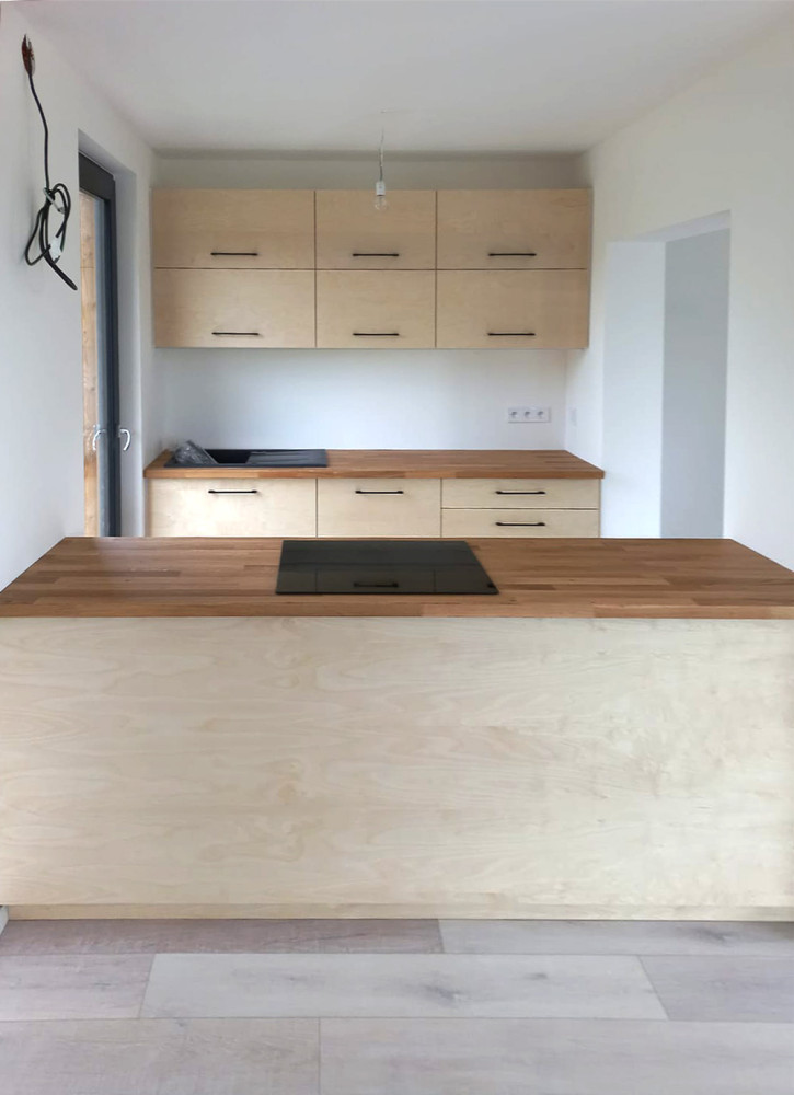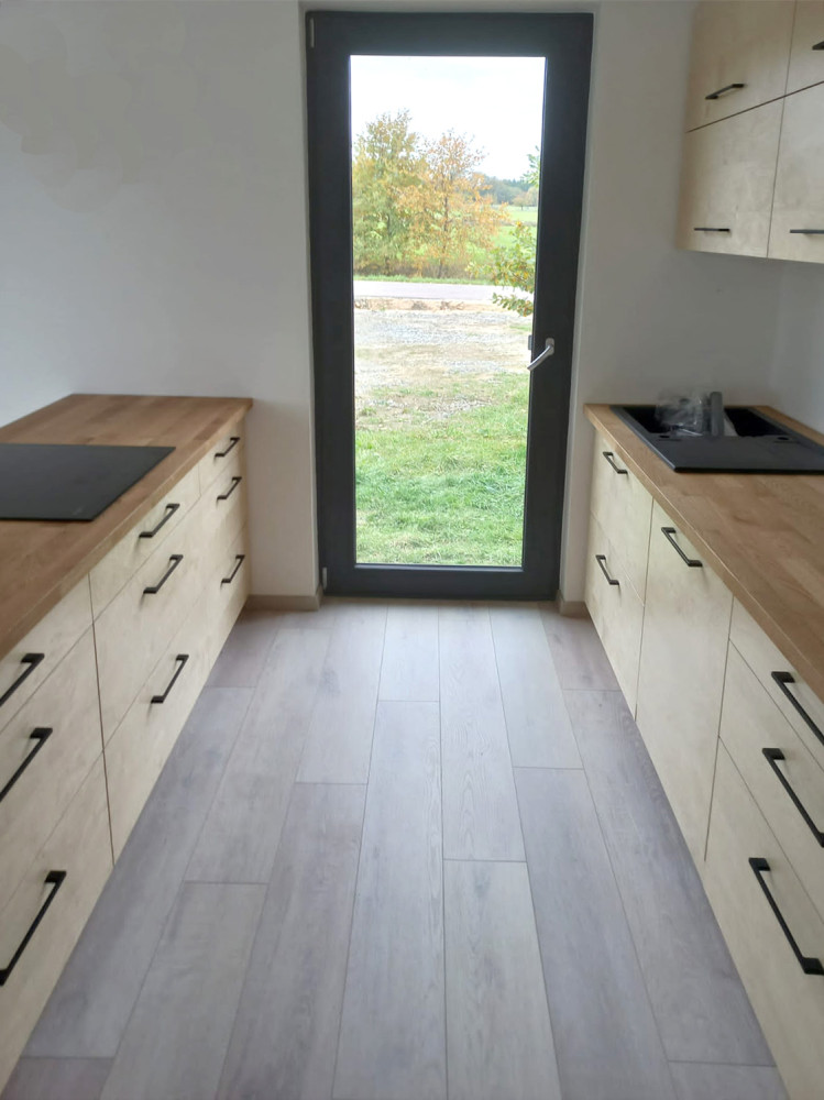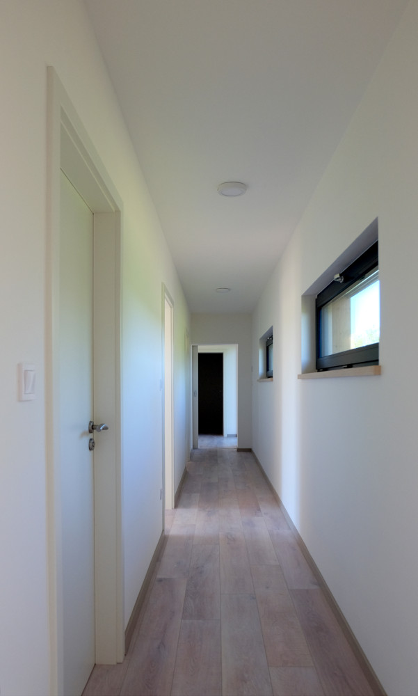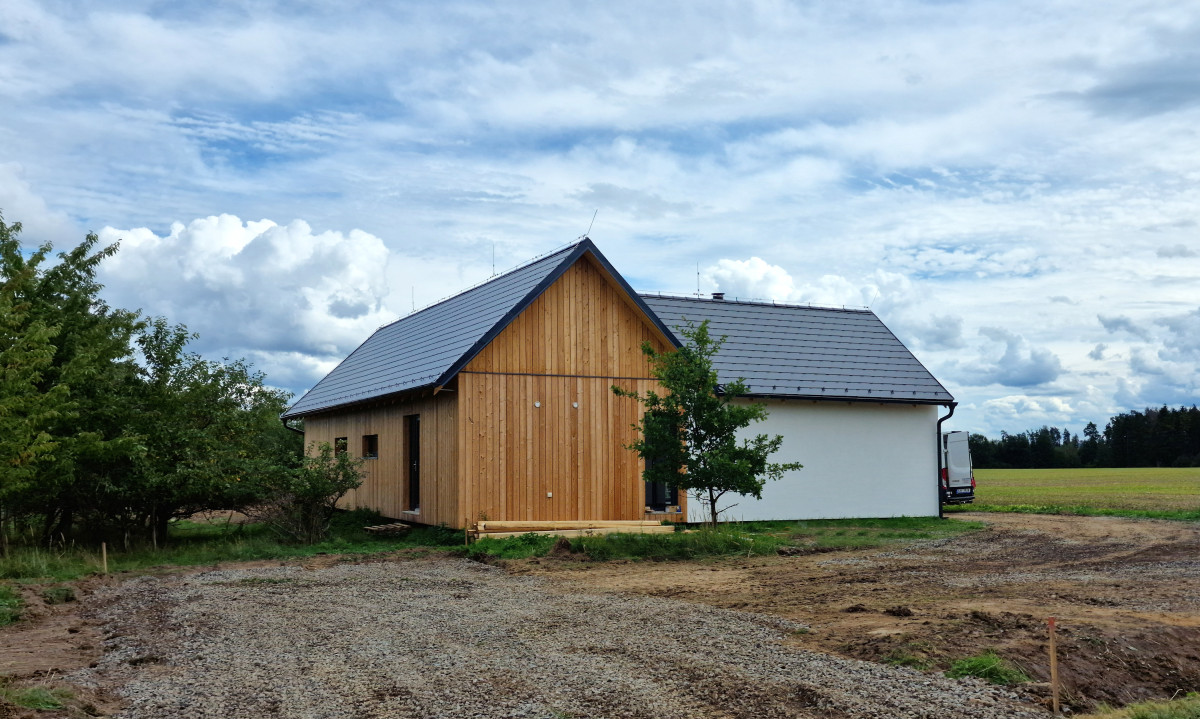 Kompletní realizace domu pro trvalé bydlení, vycházející z naší typové varianty 4blokki home L. Aby dům mohl být kolaudován v lokalitě CHKO Železné hory, bylo třeba doplnit nebo změnit některé fasádní prvky, například sedlovou střechu nebo materiál fasády. Naše dodávka zahrnovala projekční studii pro CHKO, zpracování kompletní projektové dokumentace, vyřízení povolení stavby, stavbu vlastního domu i vnější práce, jako realizaci biočistírny odpadní vody a usazení retenční nádrže.