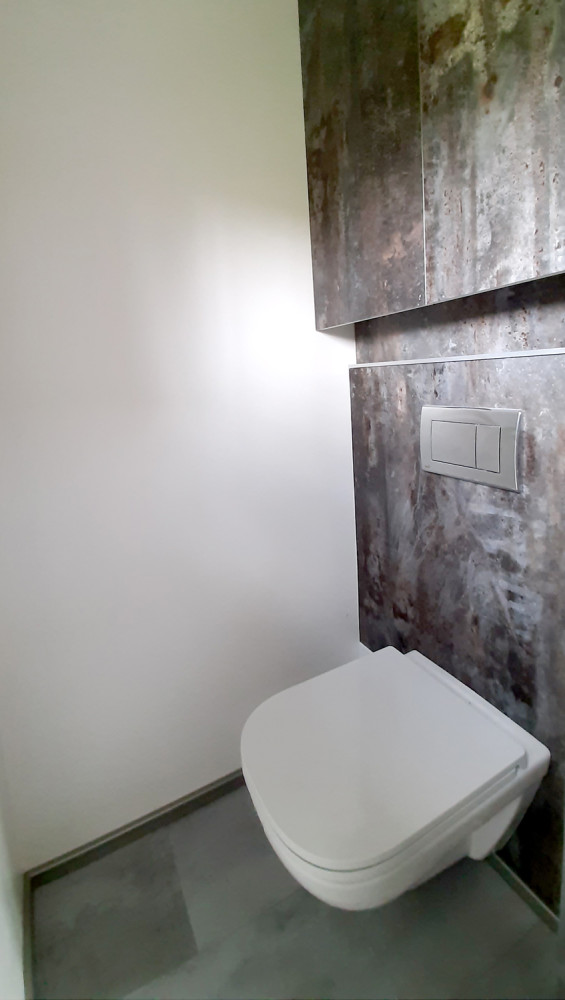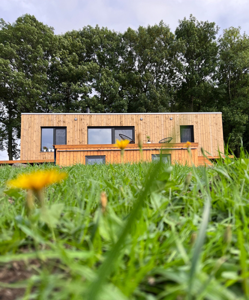 V roce 2021 jsme postavili první z nich, 1blokki home jako domek pro hosty. V roce 2022 jsme realizovali dvou kontejnerovou individuálně navrženou stavbu na trvalé bydlení. Klientky si samy navrhly originální vnitřní uspořádání, jehož hlavním cílem byl co nejvíce otevřený prostor dolnněný krbem. Zajímavě řešená je koupelna, také podle návrhu šikovných investorek. Obklad stěn tvoří velkoformátové vinylové desky s povrchem evokujícím rezavý plech. Domek se neobešel bez vysněné podsklepené terasy stavěné klasickou technologií z betonových tvárnic, kterou si klientky realizovali svépomocí. Dům zdobí, tak jako sousední 1blokki home, zelená extenzivní střecha.