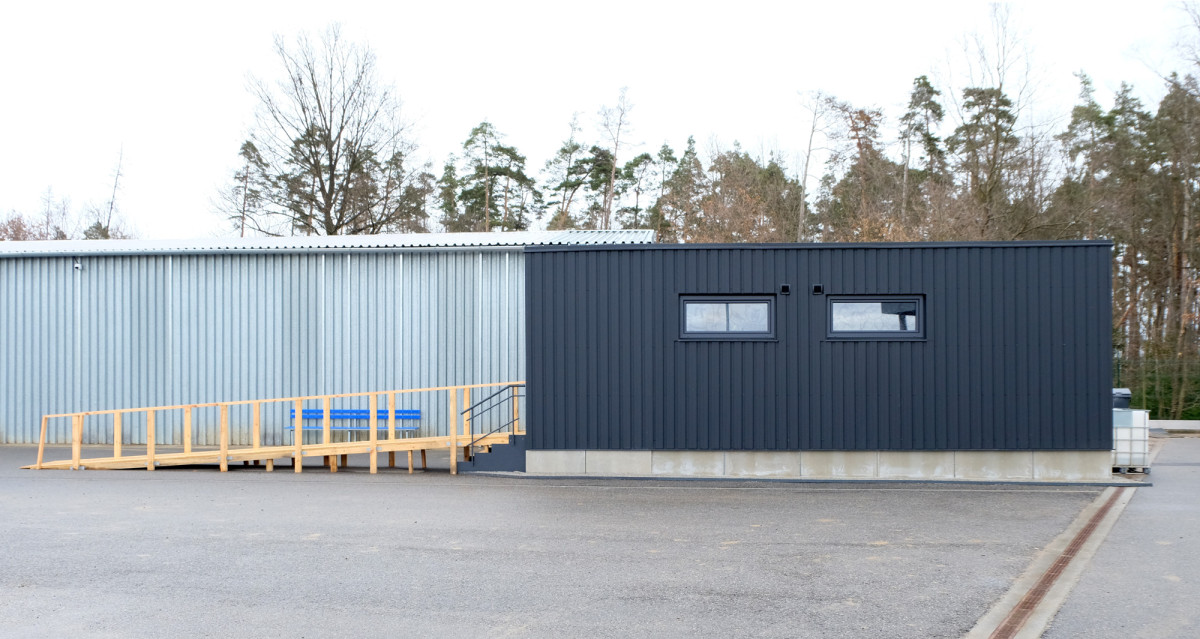 Velmi pevná ocelová konstrukce lodních kontejnerů skýtá různorodé možnosti. Naše realizace přístavby zimního stadionu je toho důkazem. Na podzim 2022 nás oslovil majitel ocelové haly s jeho záměrem halu přestavět na malý zimní stadion. Hlavní část naší dodávky zahrnovala výstavbu zázemí stadionu na ploše tří čtyřicetistopých kontejnerů.