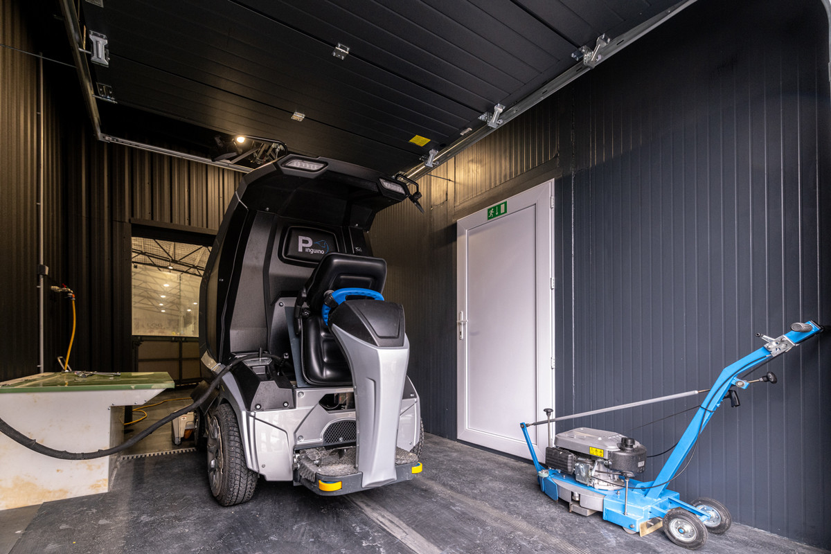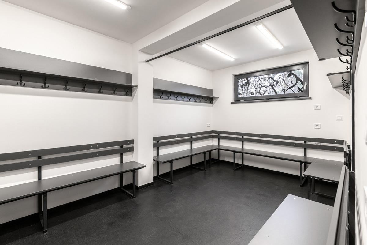 Zázemí obsahuje šatny, toalety, kuchyňku, kanceláře a prostor pro rolbu o celkové ploše 92,2 m². Opláštění tvoří izolační obklad minerálními panely, fasádu kryje nový tmavě šedý trapézový plech. Vnitřní část je obložena protipožárními sádrokartony, podlaha ve vytápěných prostorech je vinylová, v prostoru rolbovny gumová. Topení elektrické formou topných panelů. Realizovali jsme i rekonstrukci původní haly, která slouží jako zastřešení ledové plochy.