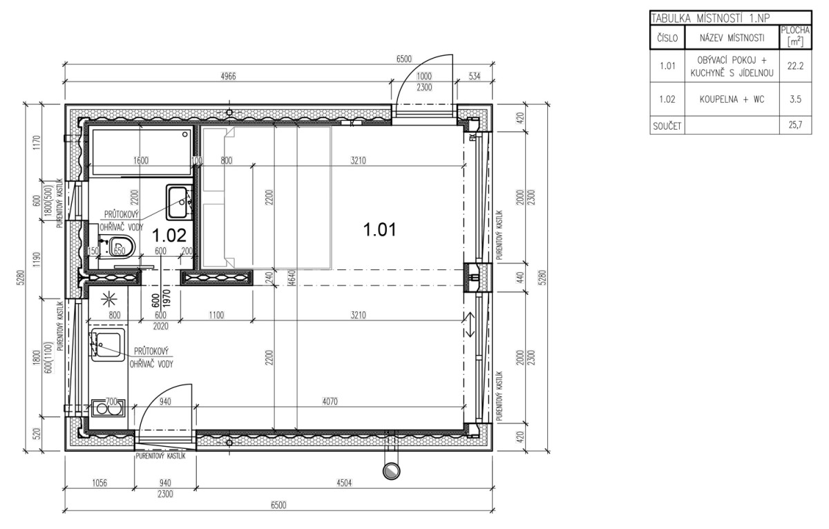 Rekreační chata v klidné chatové oblasti na okraji Havlíčkova Brodu s nosnou konstrukcí z jednoho kusu lodního kontejneru. Klasický dvanáctimetrový kontejner HC 40´jsme rozpůlili na dva šestimetrové díly a tyto díly jsme spojili delšími stranami k sobě. Vzniknul tak příjemný otevřený vnitřní prostor o celkové obytné ploše 25,7 m². Vstupní dveře jsou na přání klienta otočeny panty do exteriéru, aby v interiéru nezabíraly prostor.