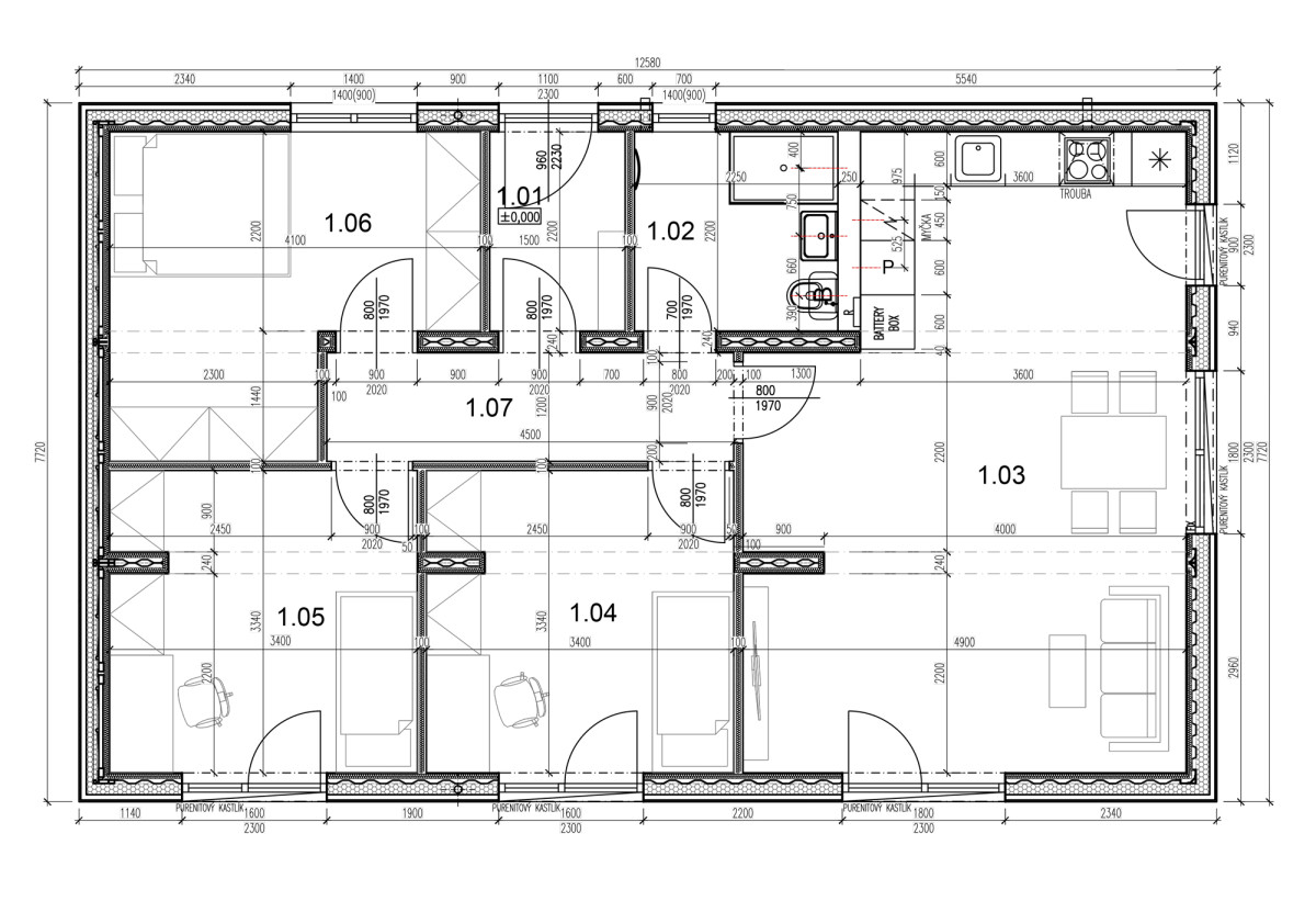 Vytápění: elektrické podlahové (uhlíková topná fólie)